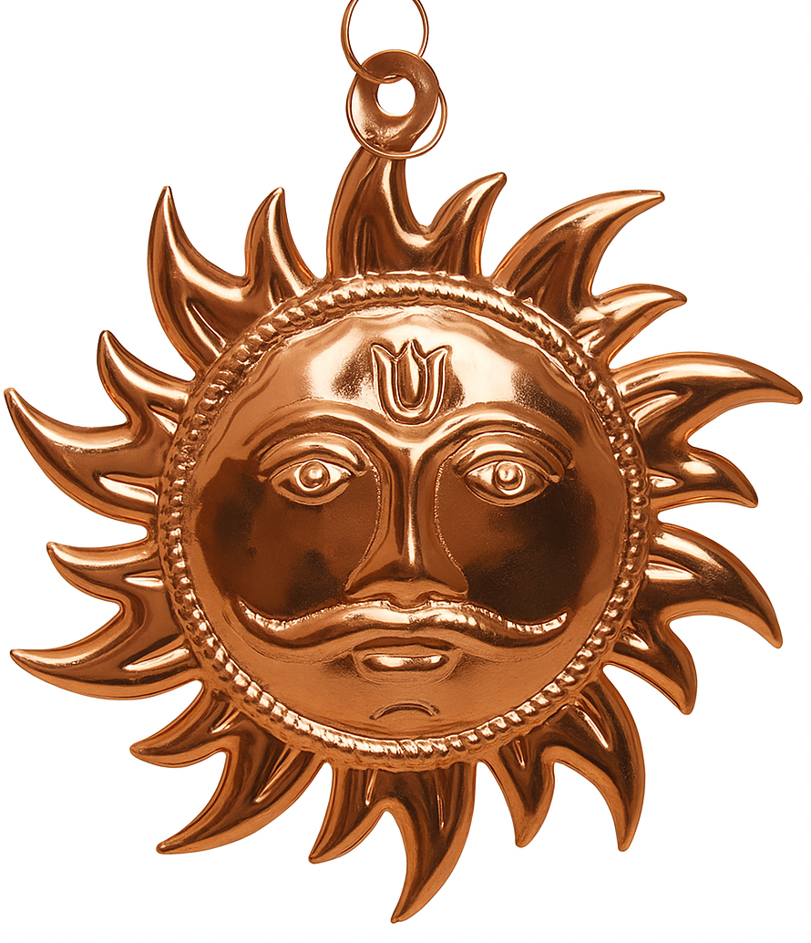 Handcrafted copper sun wall hanging — an auspicious décor piece for homes, temples, and pooja rooms.